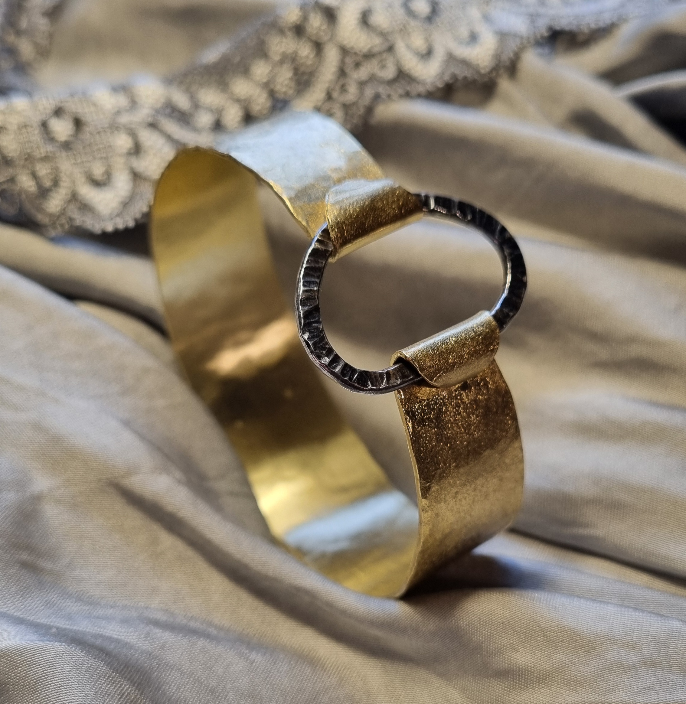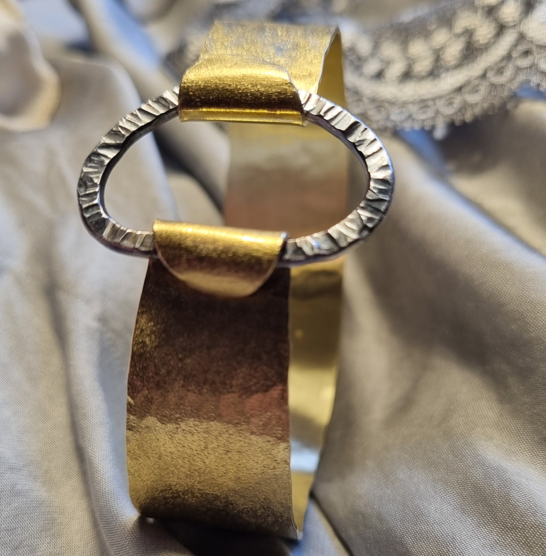 Armring i børstet messing og oxideret sølv.