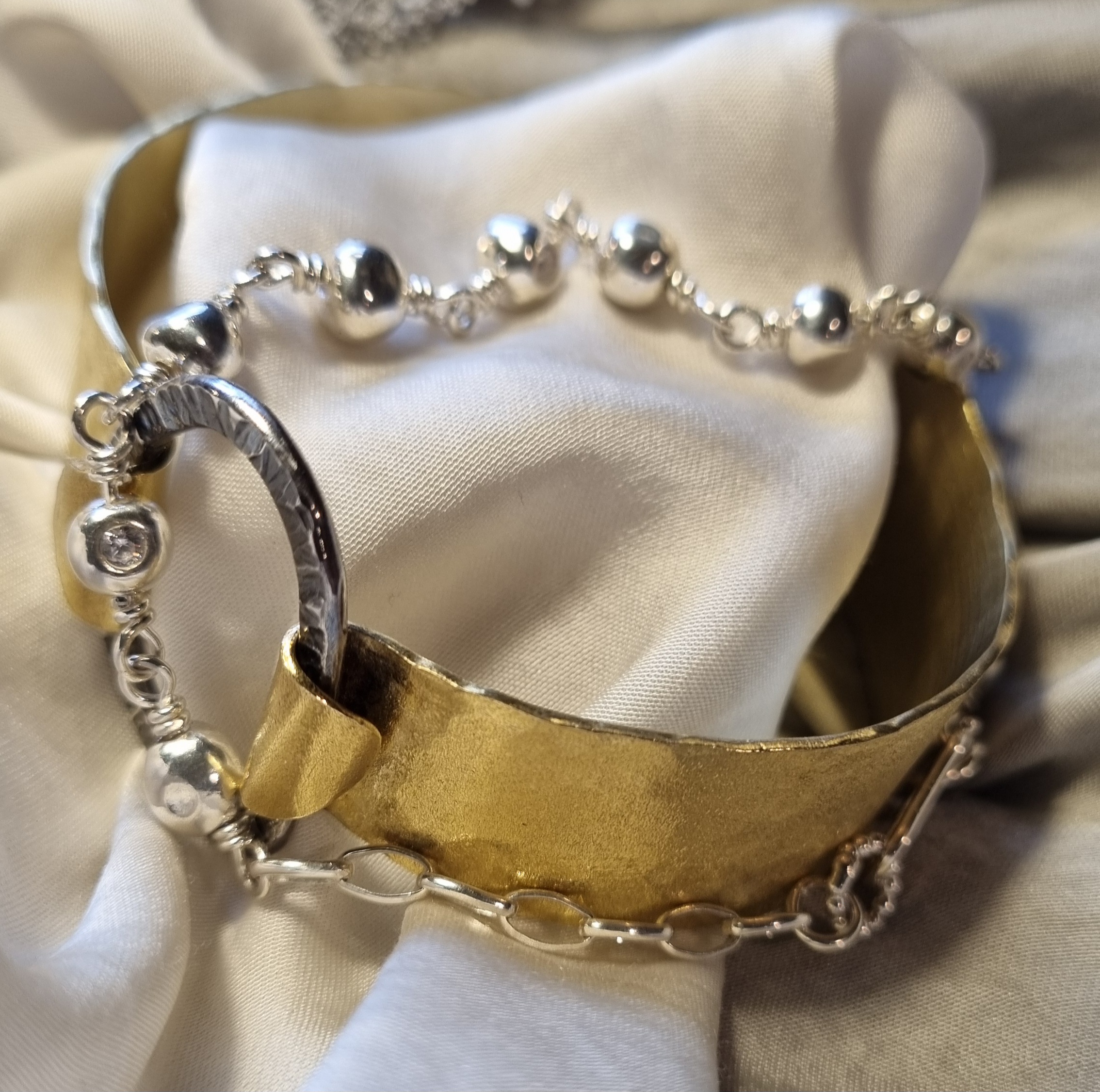 Messing og oxideret sølv klær’ hinanden særdelses godt og giver et godt samspil til smykker i andre metaller.