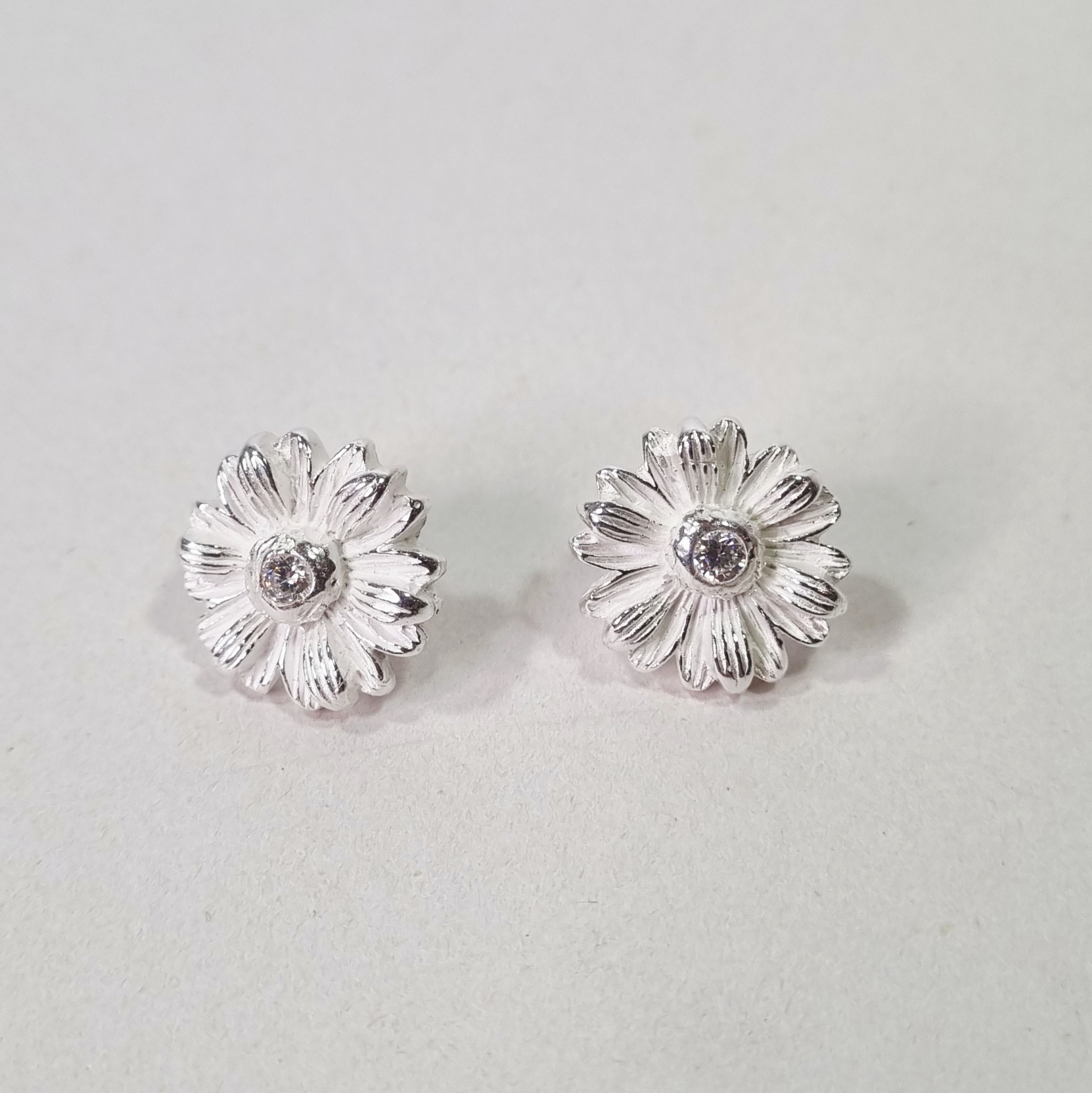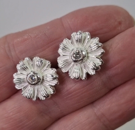 Daisy ørestikker i finsølv og med indfattet Zirkonia