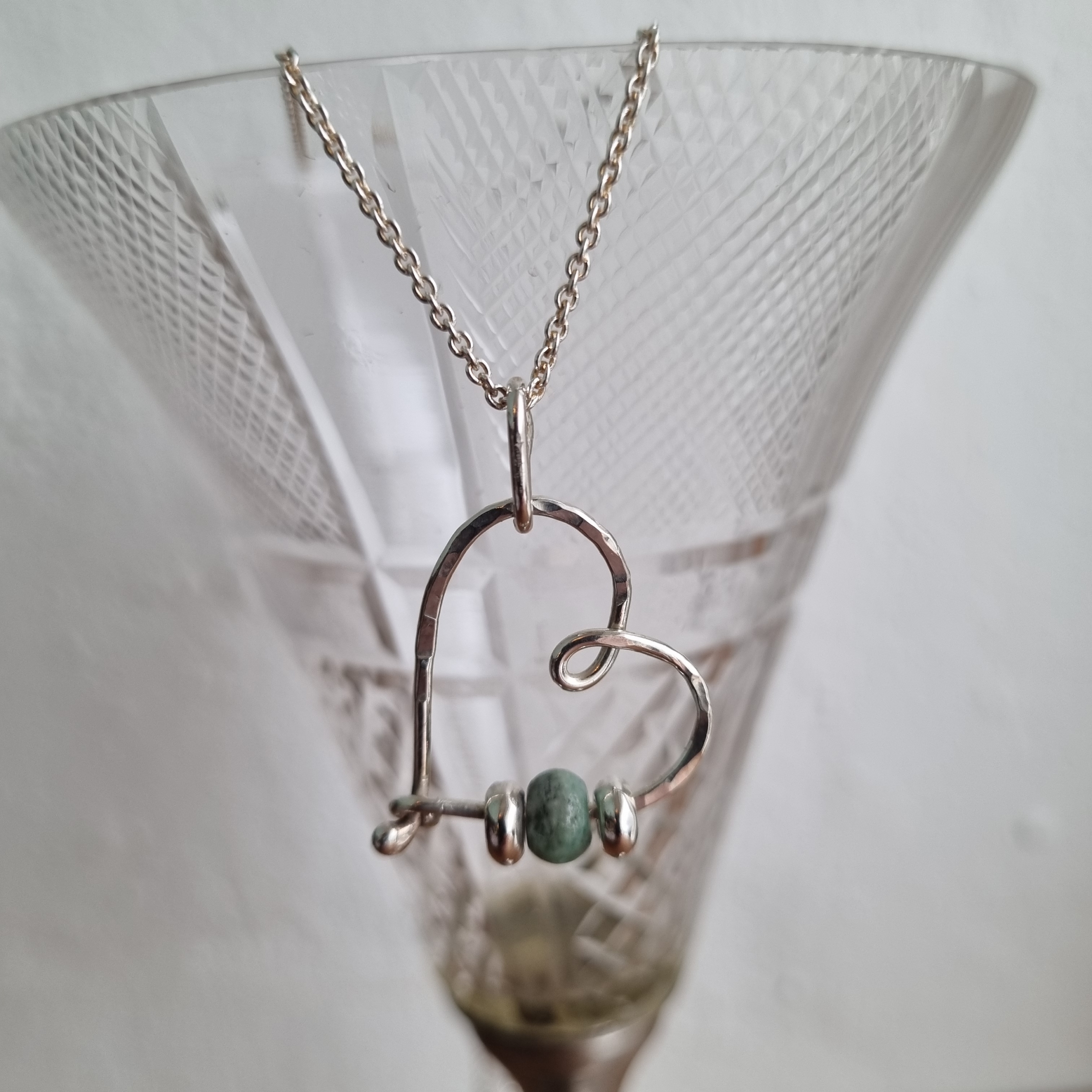 Hjerteformet vedhæng i Sterling sølv med grøn Agat Perle.