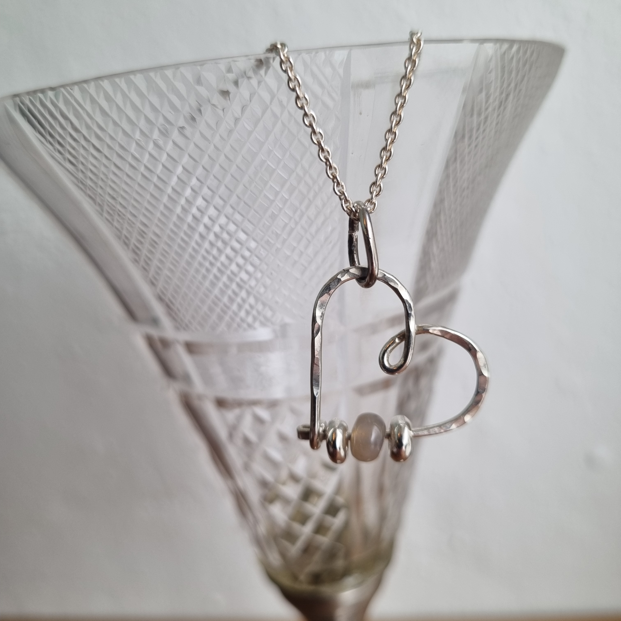 Hjerteformet vedhæng i Sterling sølv med pudderfarvet Agat perle.