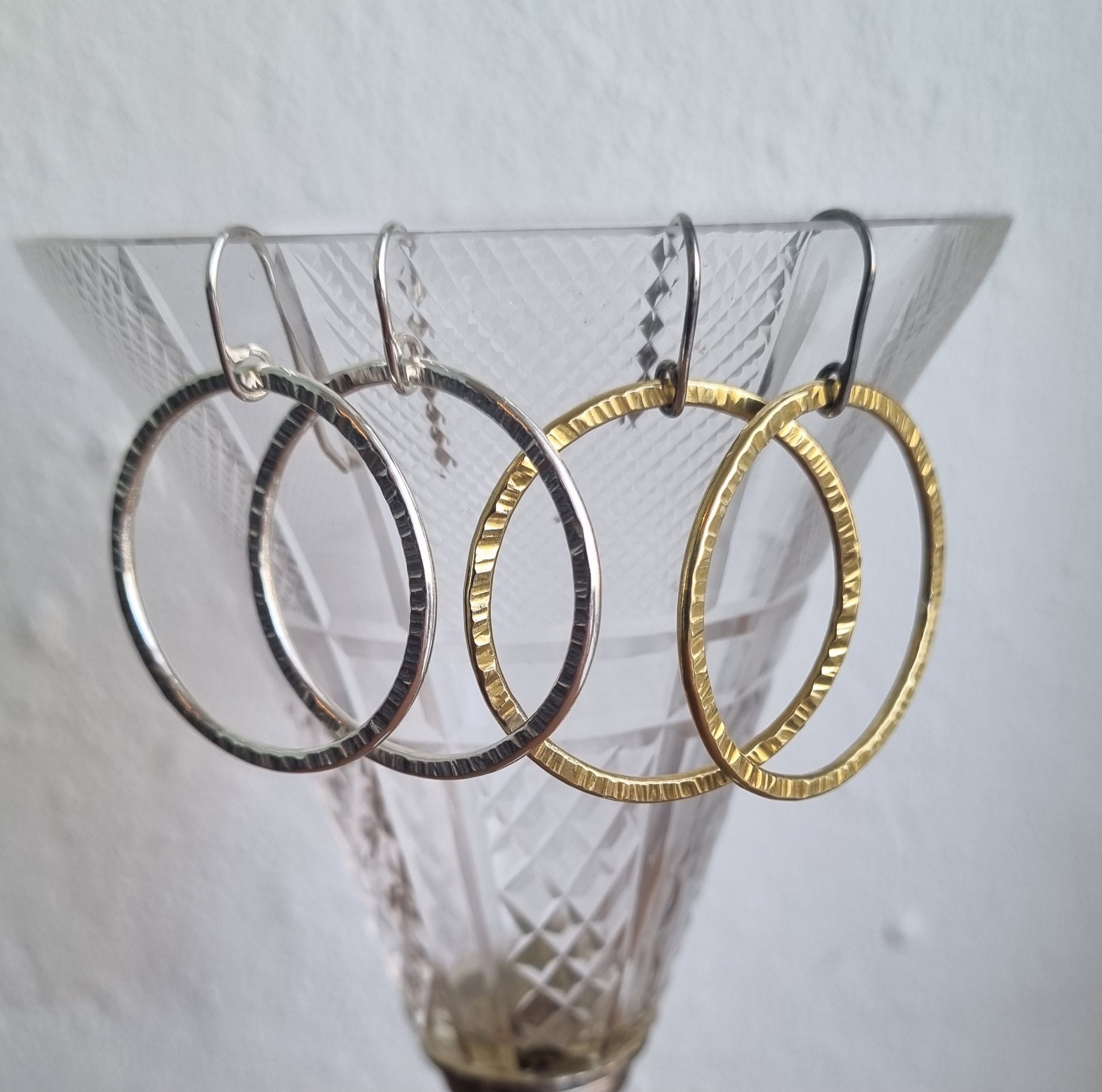 Materialer: Hoops 2 mm messingtråd, ørebøjle 0,9 mm Sterling sølv (oxideret).
