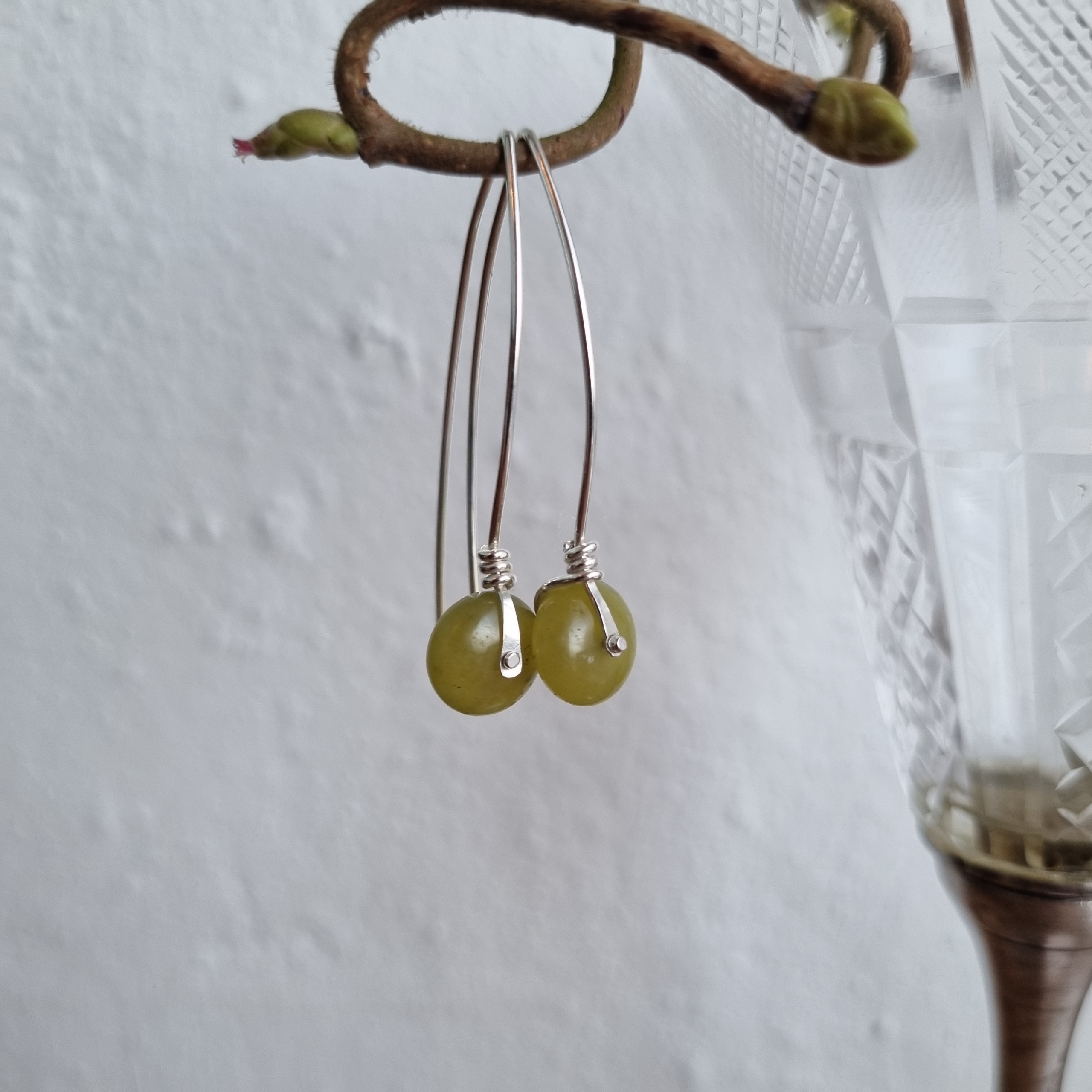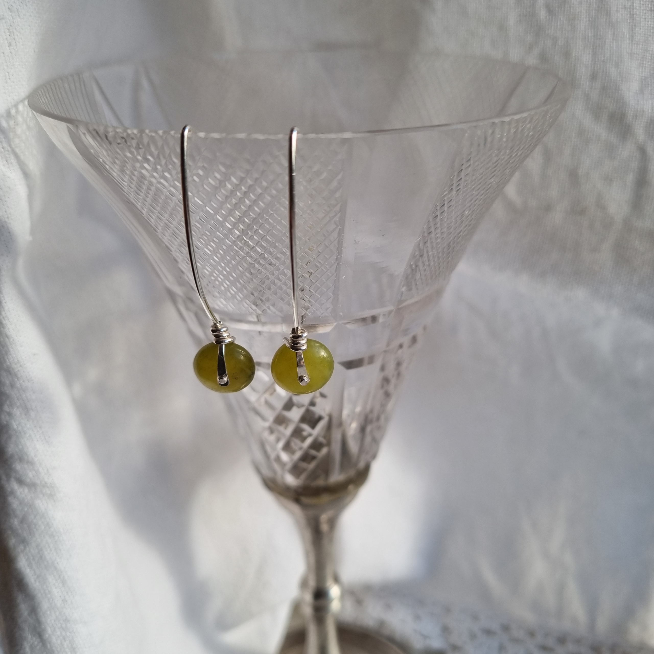 Ørering i Sterling sølv monteret med en smuk grøn sten perle.
