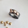 Oxideret sølvring med gyldne kugler