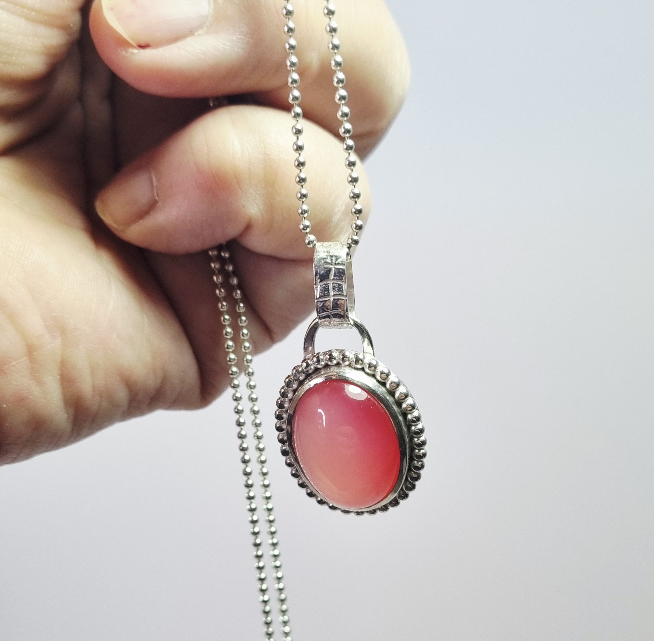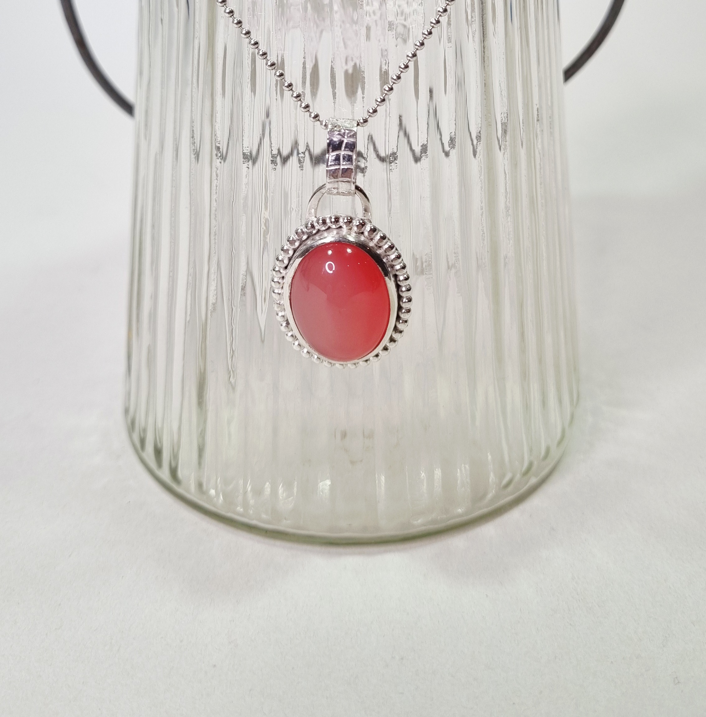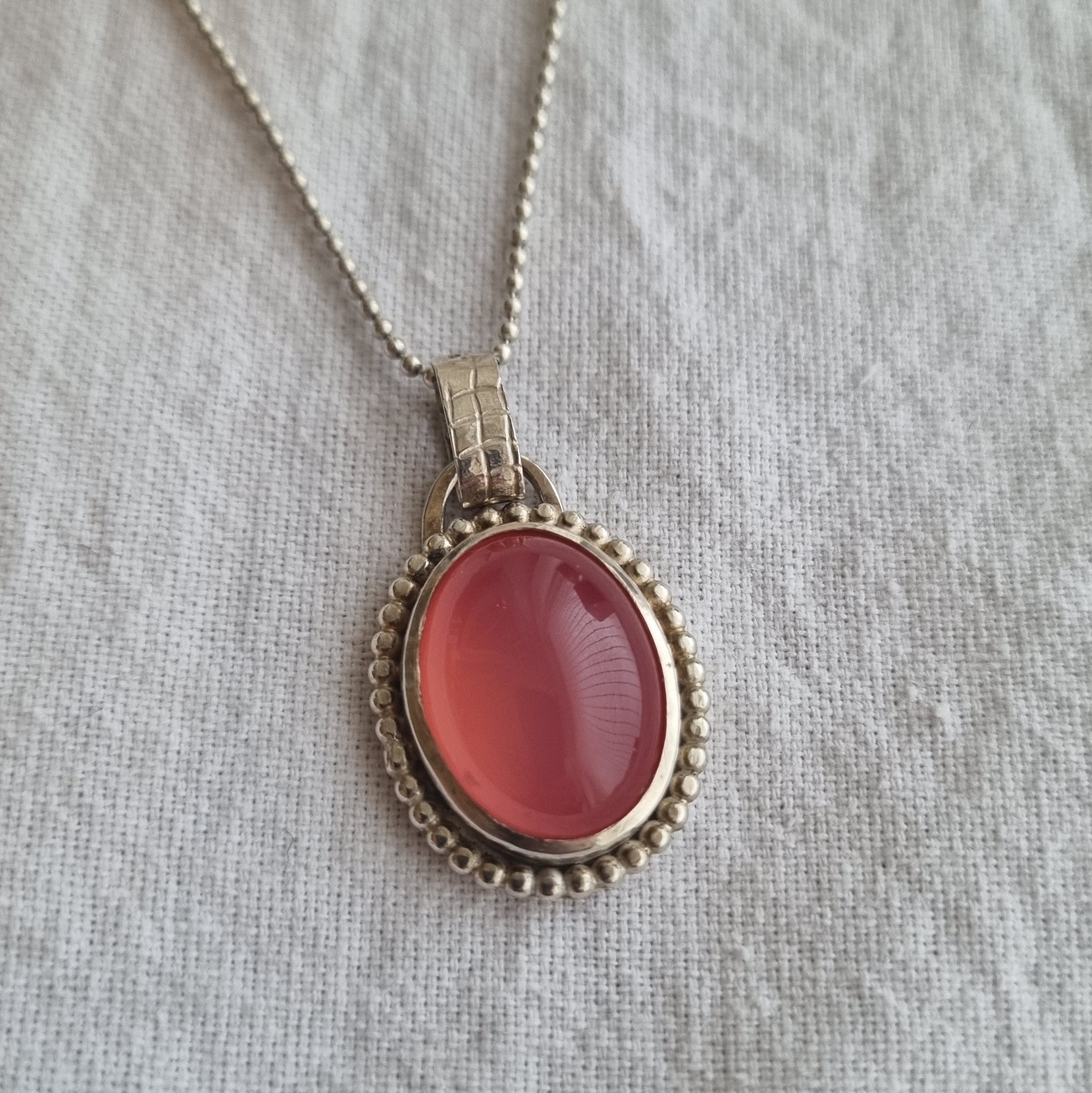 Peach Agat Calcedon vedhæng i en unik fatning i Sterling sølv.