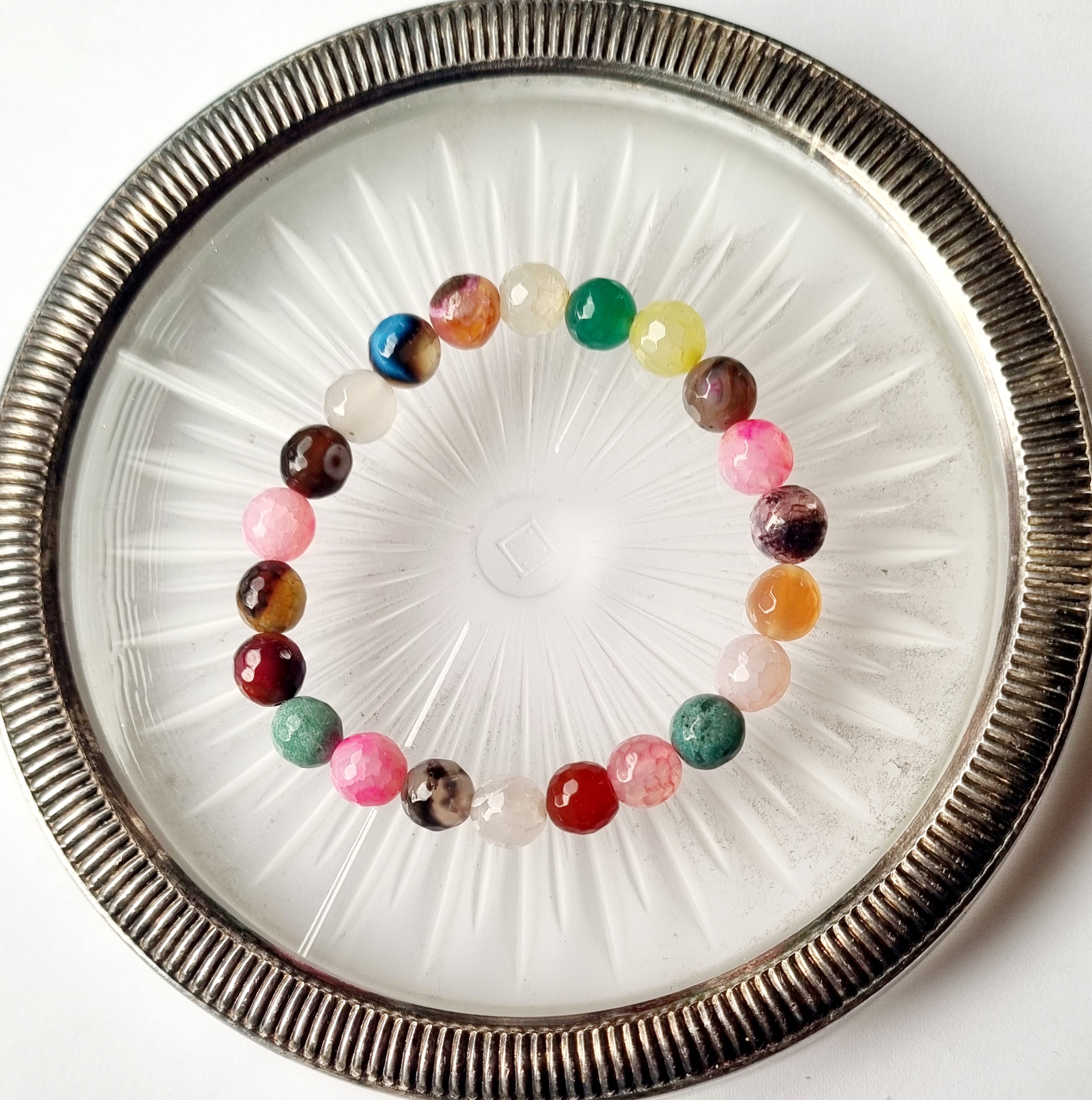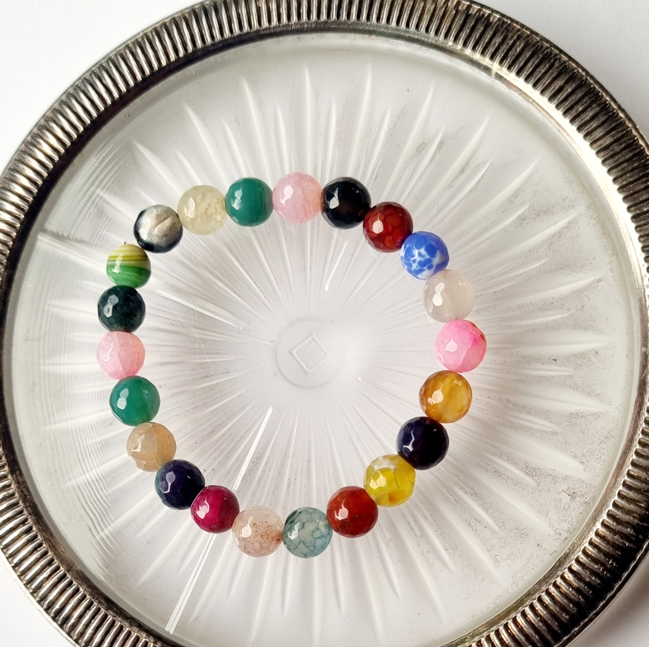 Perlearmbånd på elastik med smukke Dragon Agat perler i dejlige farver.
