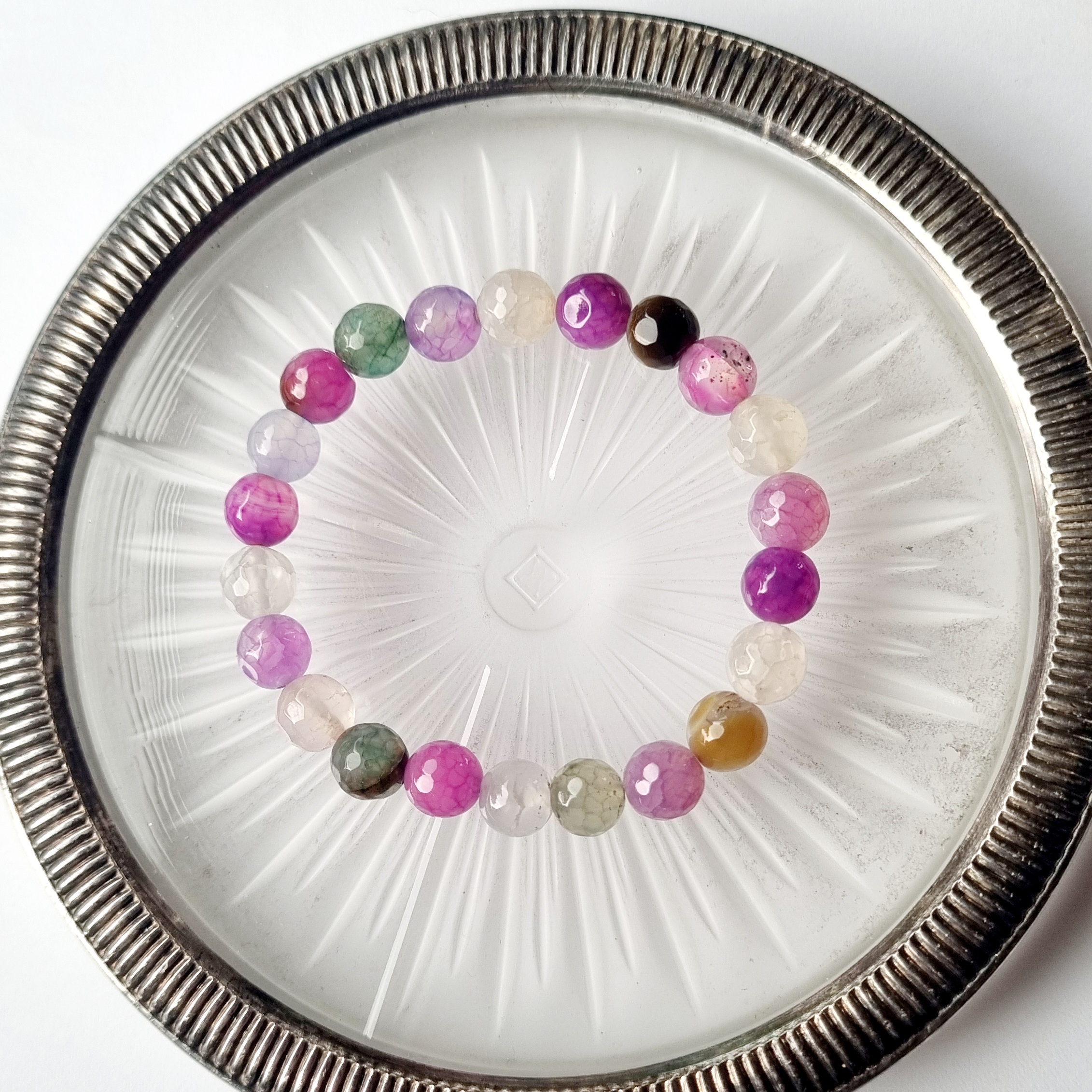 Perlearmbånd på elastik med smukke Dragon Agat perler i dejlige farver.