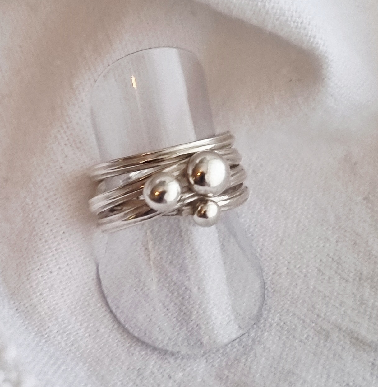 Sølvring med sølvkugler er udført i Sterling sølv.