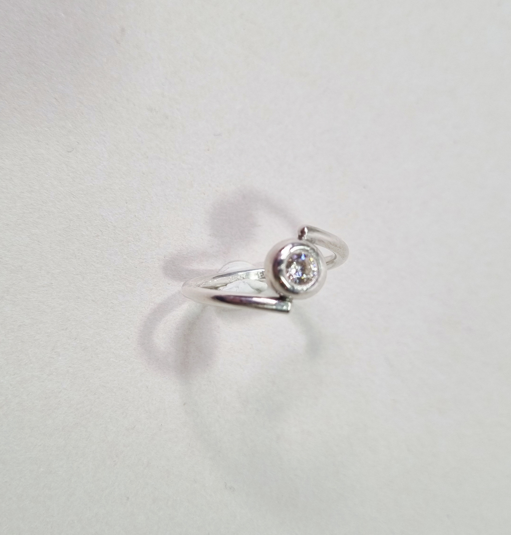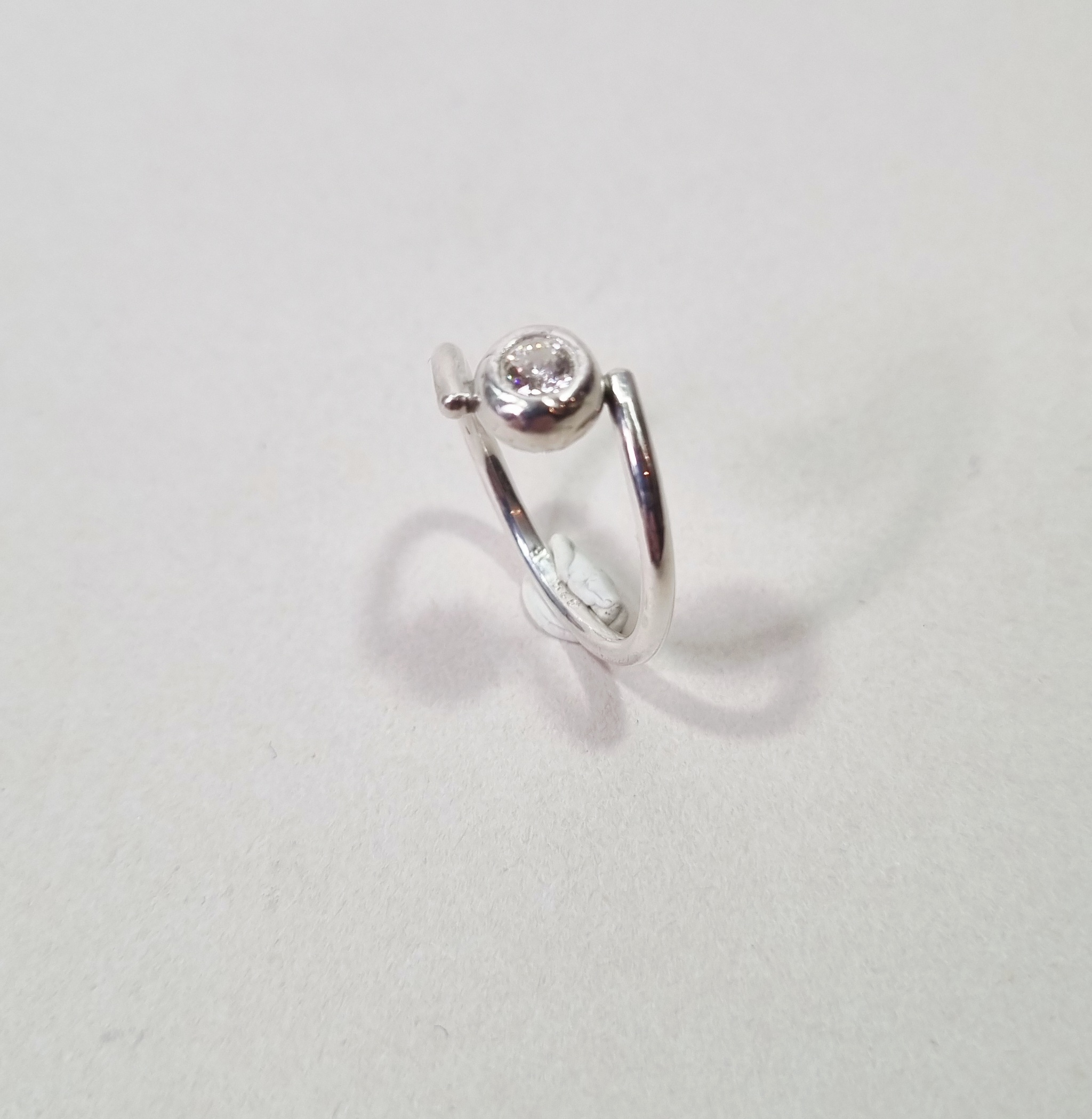 Split ring i Sterling sølv. Imellem benene er monteret en finsølv kugle hvori der er indfattet en smuk zirkonia sten.